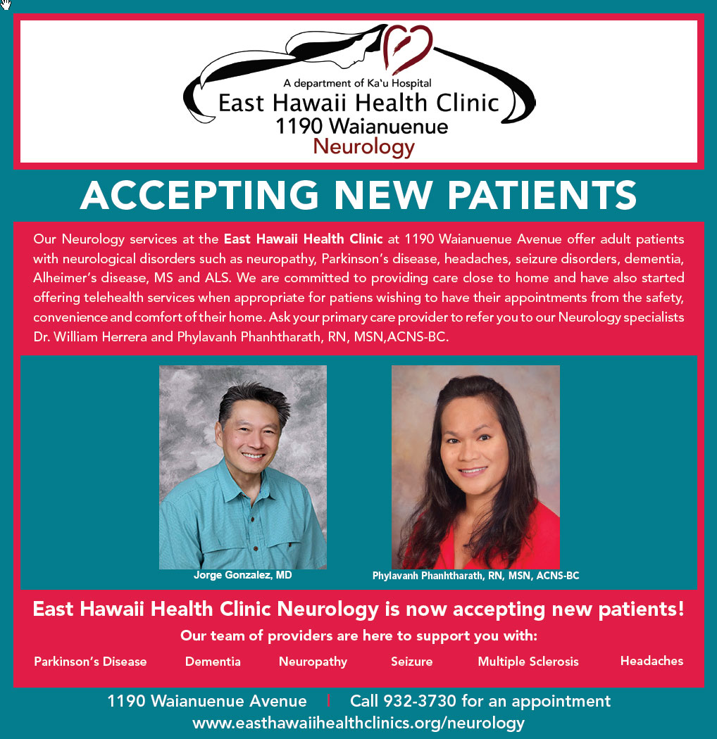 Please see your primary care provider and ask them to refer you to East Hawaii Health Clinic at 1190 Waianuenue Ave. for Neurology services.